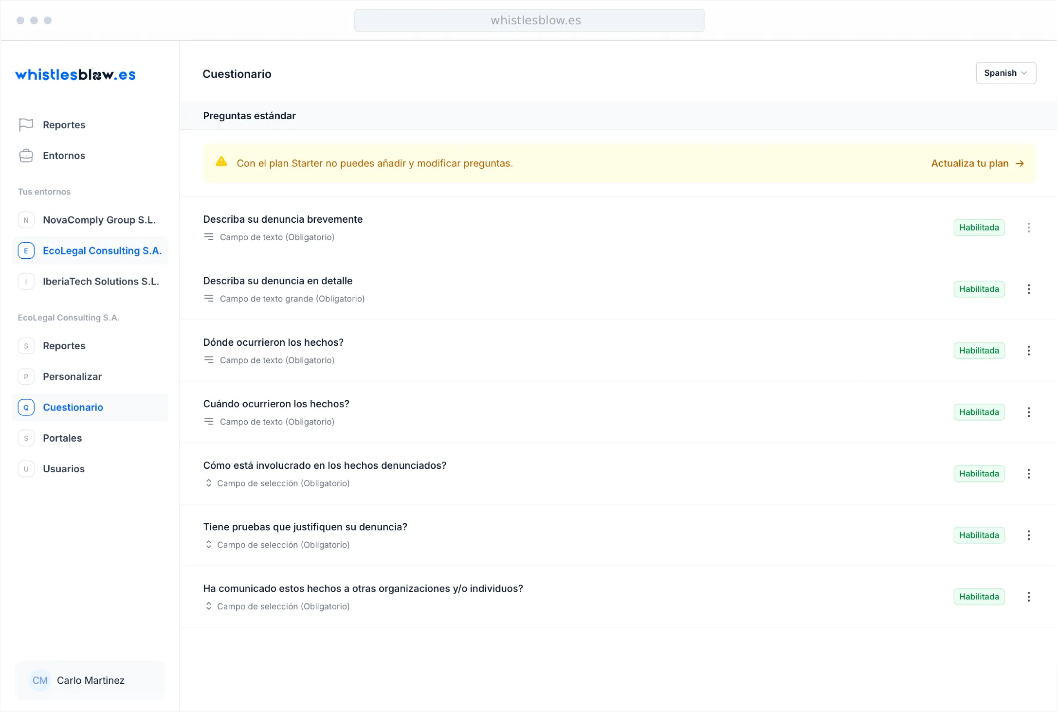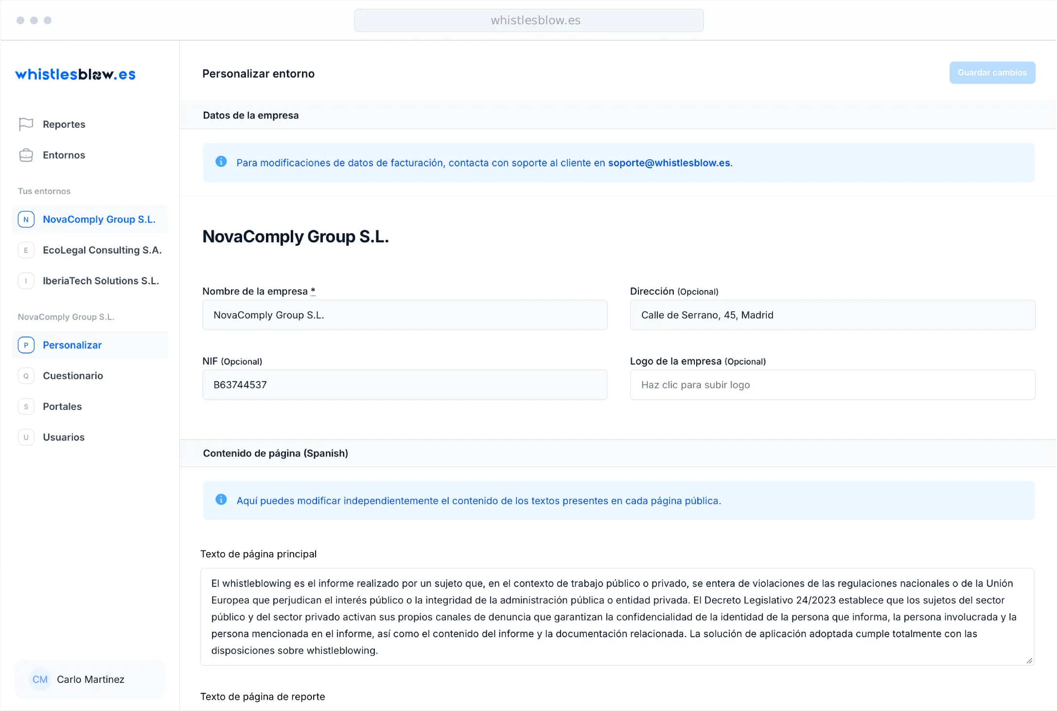 Configura tu canal de denuncias en minutos y sin conocimientos técnicos.