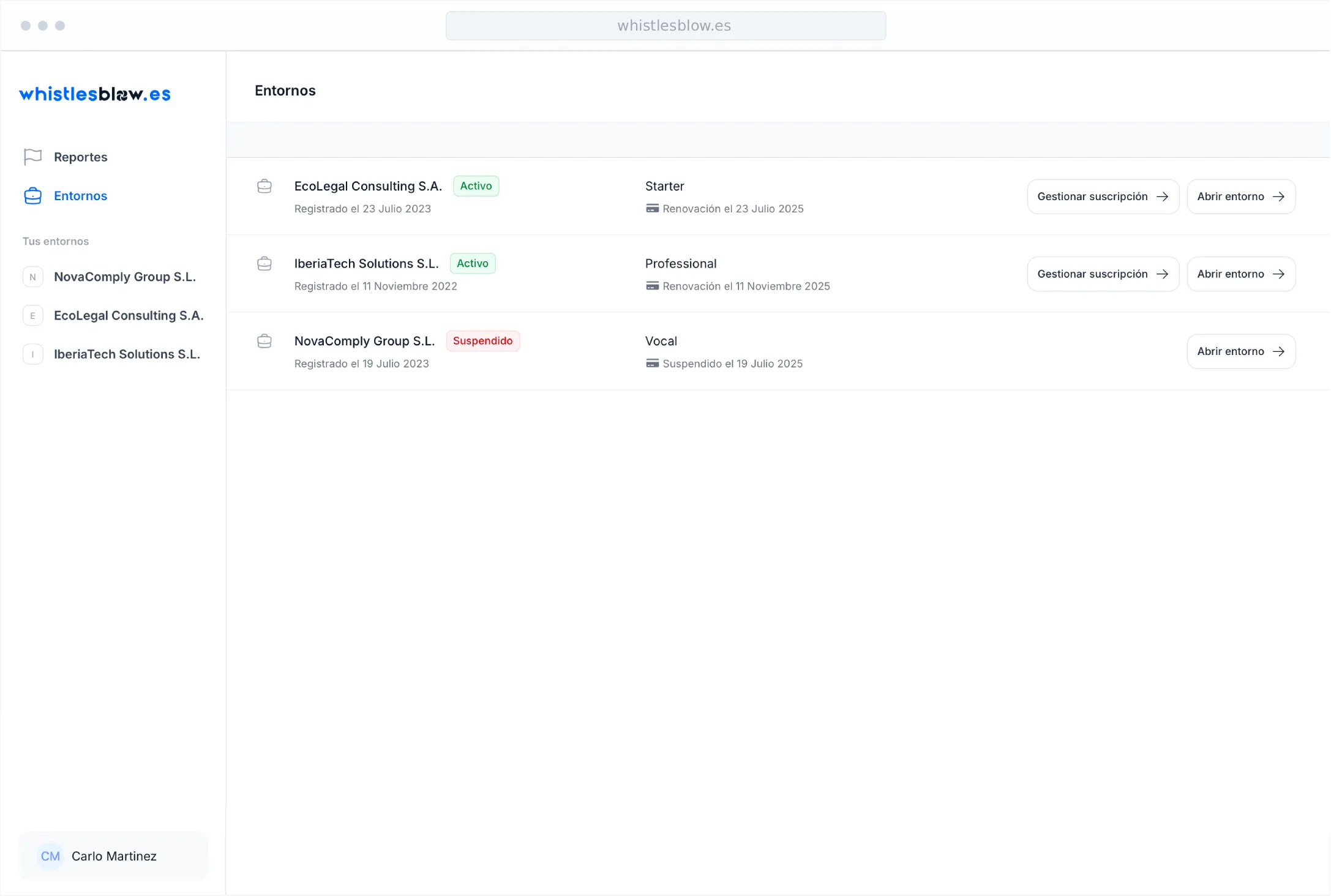 Escríbenos a soporte@whistlesblow.es y recibirás acceso a tu demo en menos de 24 horas.